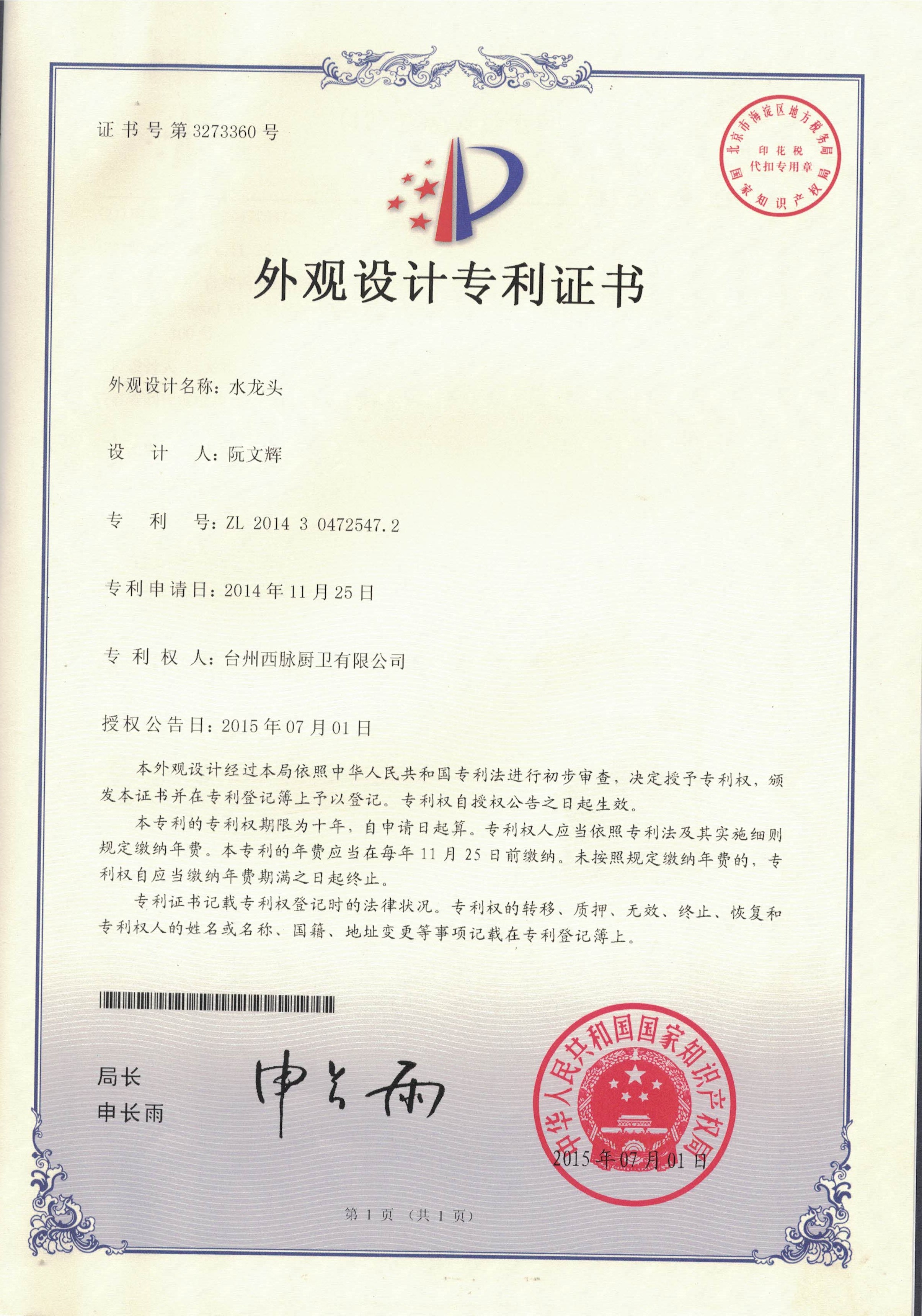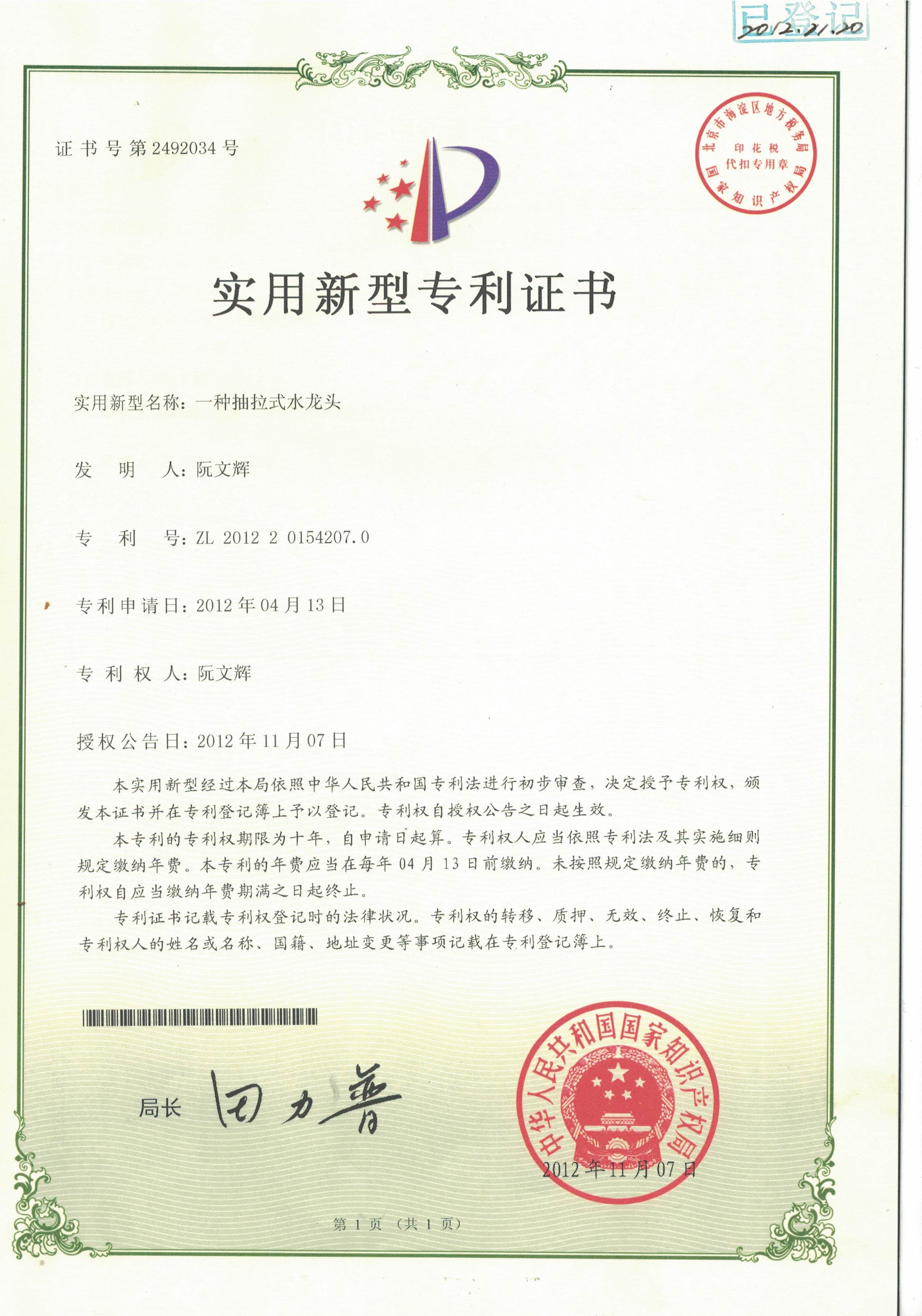 专利证书
